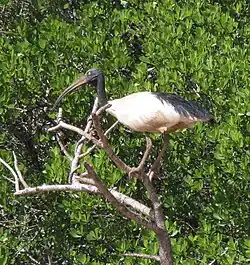 Близкородственные священный и австралийский ибисы имеют похожее вышеописанное оперение, которое также чёрно-белого блестящего цвета. Во время сезона размножения яркие перья на спине и кончиках крыльев священного ибиса похожи на перья страуса, о чём говорится в описании Дюбуа. Более того, субфоссилии подклювья, найденные в 1994 году, показали, что клюв вымершей птицы был довольно коротким и прямым для ибиса, что соответствует описанию Дюбуа[20]. Чек и Хьюм предположили, что французское слово «bécasse» из оригинального описания Дюбуа, которое обычно переводится как «вальдшнеп», могло также означать «кулик-сорока», ссылаясь на ещё одну птицу с длинным, прямым, но более крепким клювом. Они также отметили, что неправильно переведено последнее предложение, которое на самом деле означает, что птицу можно было поймать на лету[5]. Яркая окраска оперения, о которой говорили некоторые авторы, могла говорить об иризации, наблюдающейся у австралийского ибиса[10].