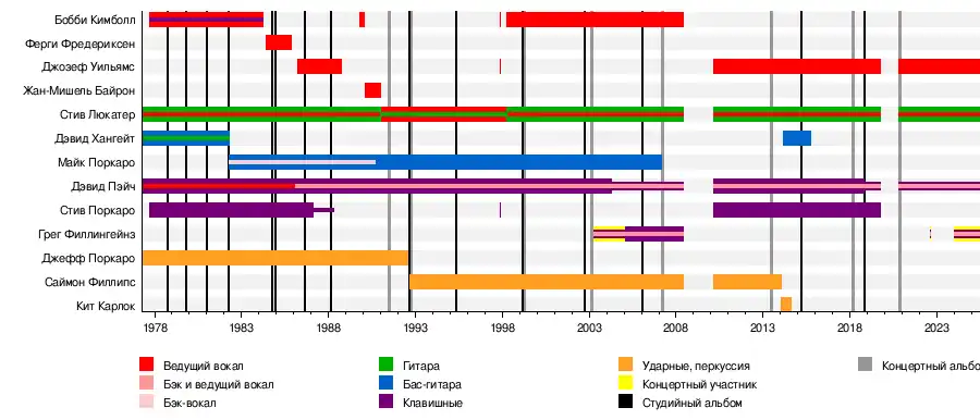 Стив Поркаро Дэвид Хангейт Бобби Кимболл Джефф Поркаро Майк Поркаро Дэннис Фредериксен Жан-Мишель Байрон Саймон Филлипс Грег Филлингейнз Кит Карлок |