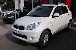 В 2017 году в Индонезии состоялась официальная премьера Toyota Rush[2]. Автомобиль построен на платформе компактвэна Daihatsu Xenia (он же Toyota Avanza), при этом сохранены рамная конструкция, задний привод и дорожный просвет 220 мм. Rush доступен с бензиновым двигателем 1,5 л мощностью 105 л. с., работающий в паре с -5-ступенчатой механической коробкой передач или 4-диапазонным «автоматом»[3]. Привод – задний, хотя в некоторых странах есть и полноприводные версии[4]. Rush оснащён системами ABS, курсовой устойчивости, распределения тормозных усилий, кондиционером, информационно-развлекательной системой с сенсорным дисплеем, люком с электроприводом и ассистентами парковки, запуск мотора осуществляется с кнопки[5].