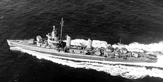 Выведен в резерв 6 февраля 1947 года. 26 февраля 1954 года передан Тайваню, где 26 февраля 1954 года введён в состав флота как 15 «Han Yang». Из ВМС США исключён 1 ноября 1974 года. Исключён из состава Тайваньского флота 5 января 1975 года и разобран на слом.