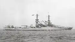 ![]() Линкор ВМС США Айдахо (BB-42) в начале службы. |