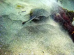- ↑ Hoisington, G. (IV) and Lowe, C.G. Abundance and distribution of the round stingray, Urobatis halleri, near a heated effluent outfall. — 2005. — Vol. 60, № (4). — P. 437—453. — doi:10.1016/j.marenvres.2005.01.003. — PMID 15924993.